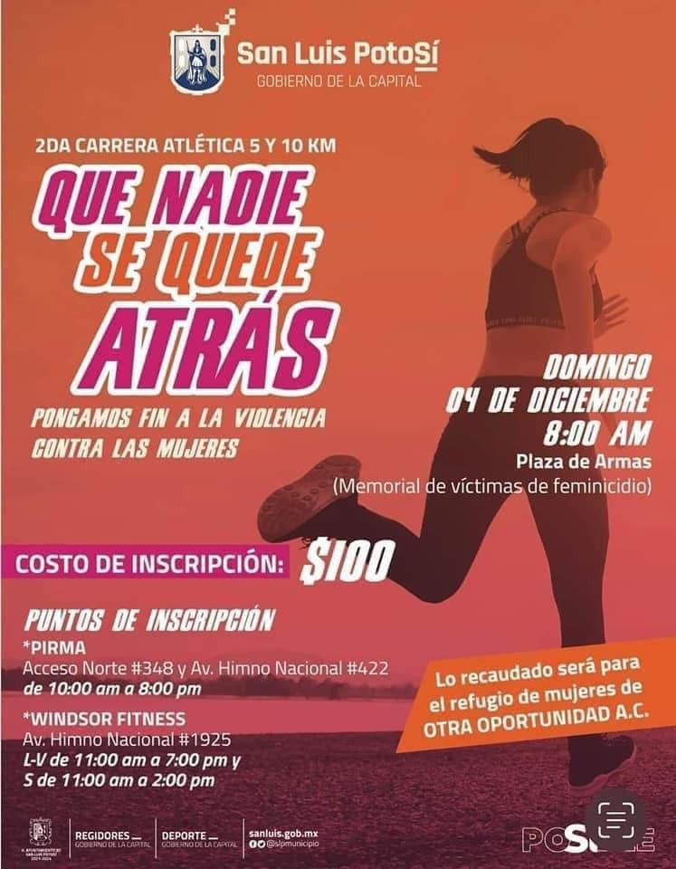 La Comisión Municipal de Atención a las Mujeres reiteró el exhorto a la ciudadanía para que participen en la segunda Carrera Atlética con causa “Que nadie se quede atrás, pongamos fin a la violencia contra las mujeres”, como parte de las acciones de la Jornada “16 Días de Activismo por el Día Internacional de la Eliminación de la Violencia contra las Mujeres 25N”, a la que se sumó el Gobierno de la Capital.