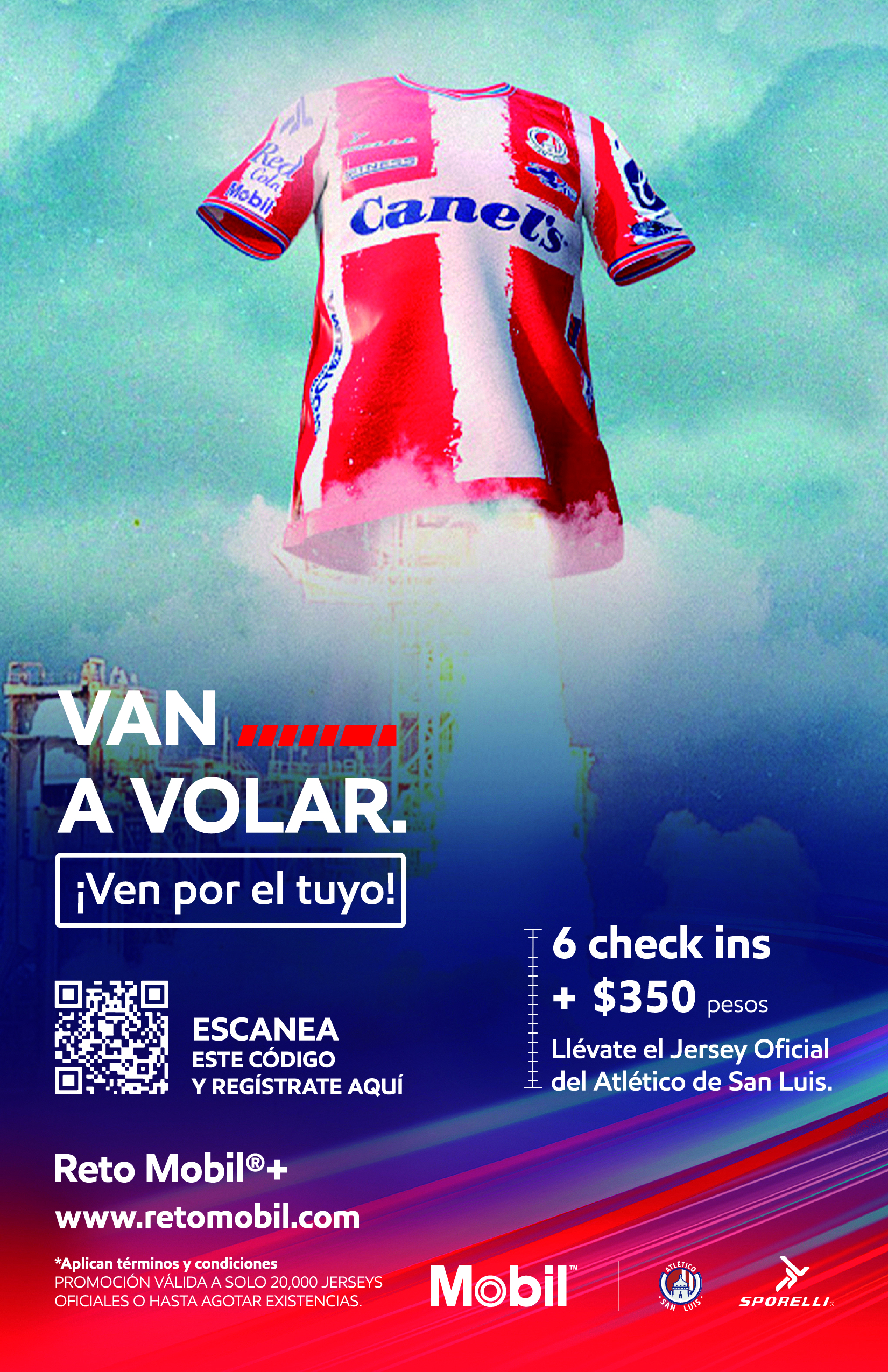 La campaña de Jersey Oficial cuenta con la entusiasta colaboración del Atlético de San Luis y la marca Sporelli que viste al club. La dinámica para adquirir un Jersey Oficial es sencilla. Solamente es necesario registrarse en www.retomobil.com y llenar un formulario que permite descargar una tarjeta digital individual. Al comprar combustible en las estaciones de servicio Mobil y acumular 6 check – ins y más $350.00 MXN es posible obtener el Jersey Oficial del Atlético de San Luis. Este procedimiento puede hacerse en cualquier estación de servicio Mobil en la ciudad de San Luis Potosí.