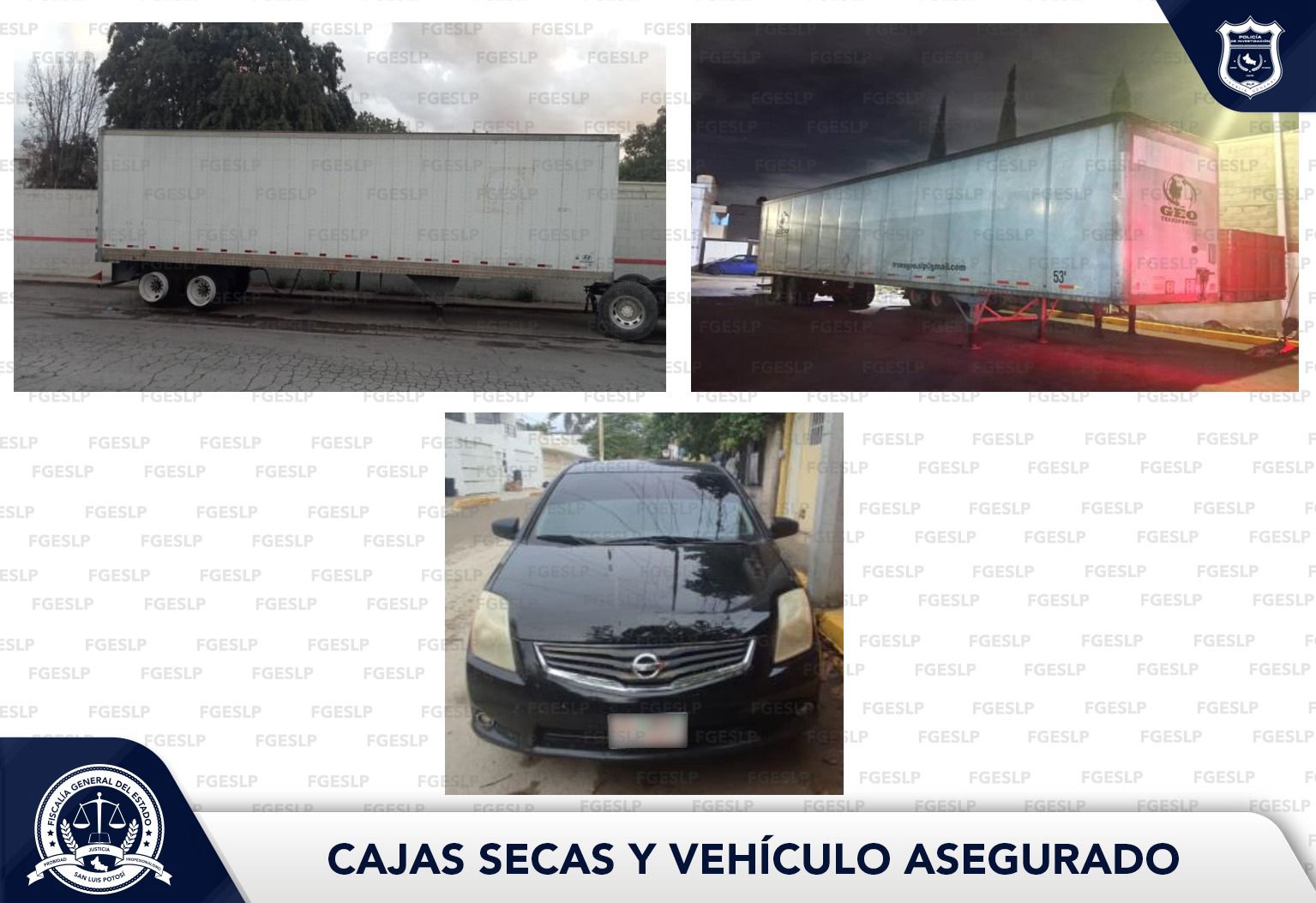 La Unidad de Robo de Vehículos de la Policía de Investigación (PDI) realizó el aseguramiento de dos cajas secas y un automotor en territorio potosino, informó la Fiscalía General del Estado de San Luis Potosí (FGESLP).