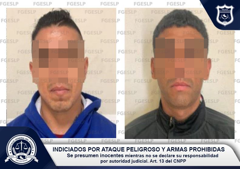 Mediante una orden de aprehensión que se cumplimentó en colaboración con autoridades del Estado de Aguascalientes, se aseguraron a dos individuos por los probables delitos de ataque peligroso y armas prohibidas, mismos que eran buscados por la Fiscalía General del Estado de San Luis Potosí (FGESLP).