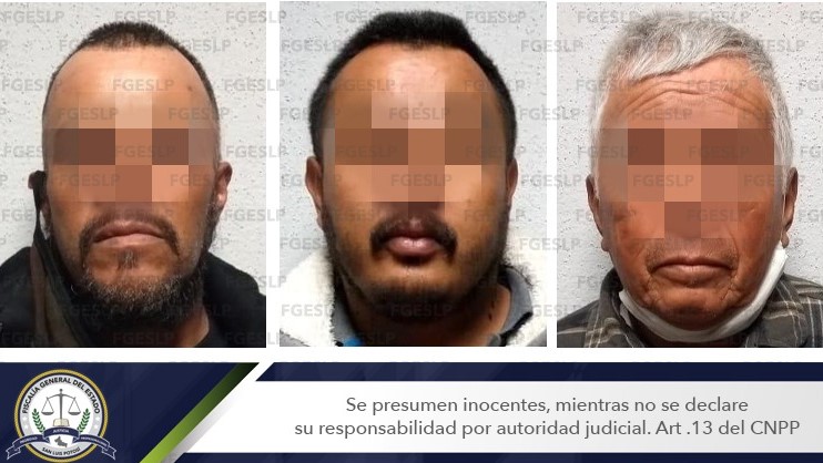 La Policía de Investigación (PDI) de la Fiscalía General del Estado de San Luis Potosí (FGESLP) cumplimentó órdenes de aprehensión en contra de un hombre de 67 años de edad, así como sus hijos de 37 años y 44 años de edad, respectivamente, por su presunta responsabilidad en los delitos de ataque peligroso y robo calificado.