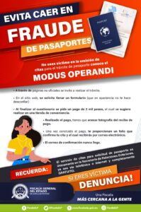 La Fiscalía General del Estado (FGE) de San Luis Potosí exhorta a la ciudadanía a estar atentos y no caer en publicidad engañosa, para evitar ser víctima de fraudes en la emisión de citas para realizar un trámite de pasaporte.
