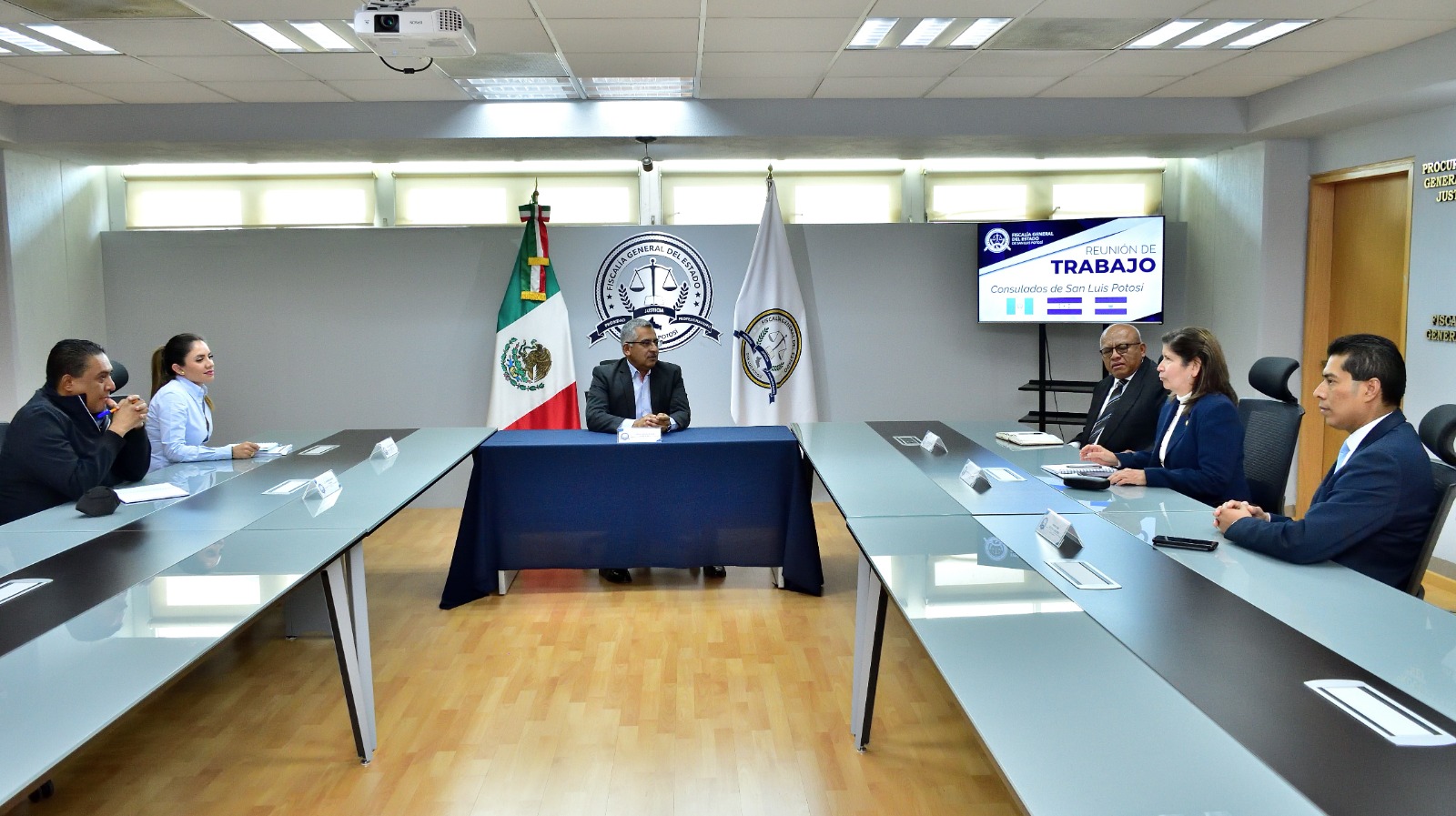 SLP. – El Fiscal General del Estado de San Luis Potosí, José Luis Ruiz Contreras, participó en una mesa de trabajo con diplomáticos de Honduras, El Salvador y Guatemala con el objetivo de fortalecer la relación institucional.