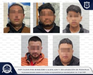Los cinco hombres capturados están identificados como Jorge «N», Adán «N», Héctor “N”, Zeus “N”, y Tomás “N”, a quienes se les imputarán los delitos de homicidio calificado y desaparición de personas.
