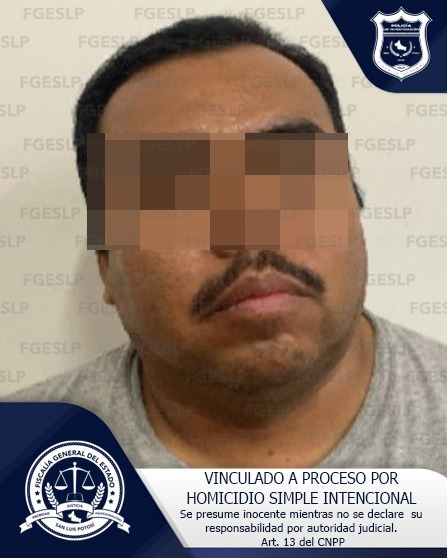 Felipe “N” resultó vinculado a proceso por el delito de homicidio simple intencional, después de que litigadores de la Fiscalía General del Estado de San Luis Potosí (FGESLP) obtuvieron esta resolución de un Juez, durante el seguimiento de la audiencia inicial.