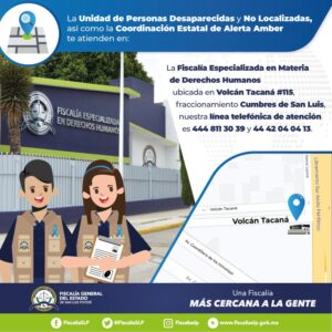 SLP. – La Fiscalía General del Estado de San Luis Potosí (FGESLP) continúa todos los días con intensas labores de localización de personas, y de esa manera, ayer 26 de agosto, se dio con el paradero de seis personas que mantenían una ficha de búsqueda en San Luis Potosí.