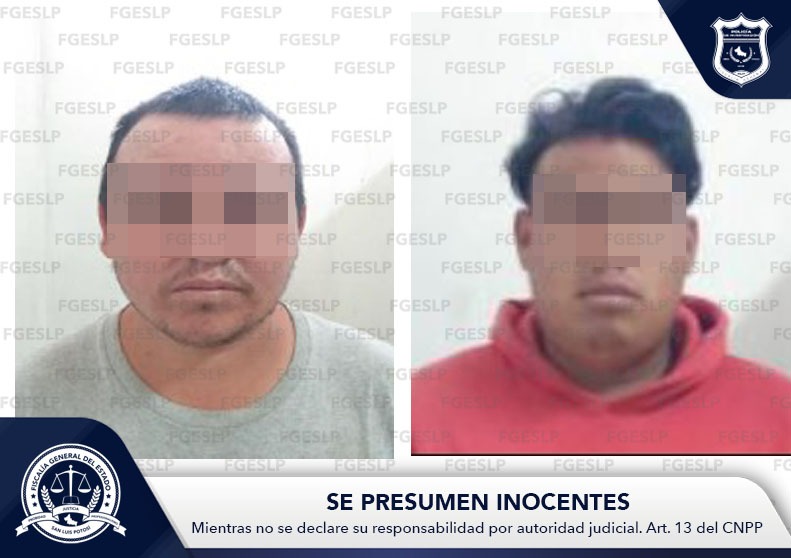 La Fiscalía General del Estado (FGESLP) informa que elementos de la Policía de Investigación lograron detener a dos sujetos, a quienes se les buscaba en el estado potosino por su presunta intervención en el delito de ataque peligroso.