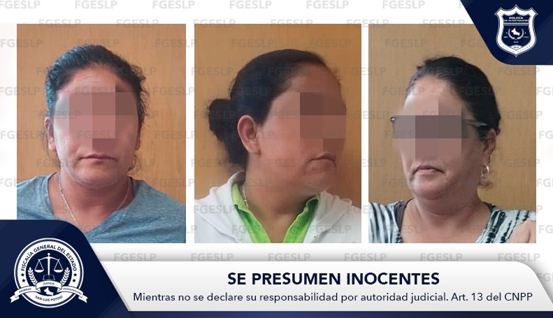 Tres mujeres señaladas de despojo agravado y robo calificado fueron detenidas por agentes de la Policía de Investigación (PDI) de la Fiscalía General del Estado (FGESLP) en la capital potosina.