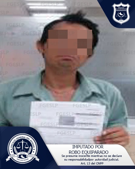 Manuel “N” fue señalado por el delito de robo equiparado y detenido por la Policía de Investigación (PDI) perteneciente a la Fiscalía General del Estado de San Luis Potosí (FGESLP).