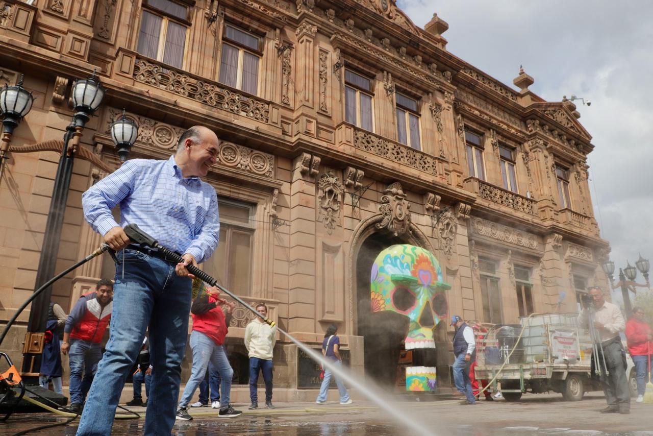 El titular de Servicios Municipales, Christian Azuara Azuara, puntualizó que en este comienzo de «100 Días de Gobierno, 100 Días de Talacha», se atenderá el primer cuadro de la Capital con sus diferentes puntos y se dividirán las diversas áreas municipales, a fin de atender y dar mantenimiento al Centro Histórico, con labores de limpieza, recolección, lavado de calles y cantera, entre otras acciones más. Recordó que con anterioridad se realizaron 50 «Días de Talacha», a los que se sumarán estos 100 más, con trabajos que se llevarán a cabo de lunes a domingo en diferentes sectores de la ciudad.