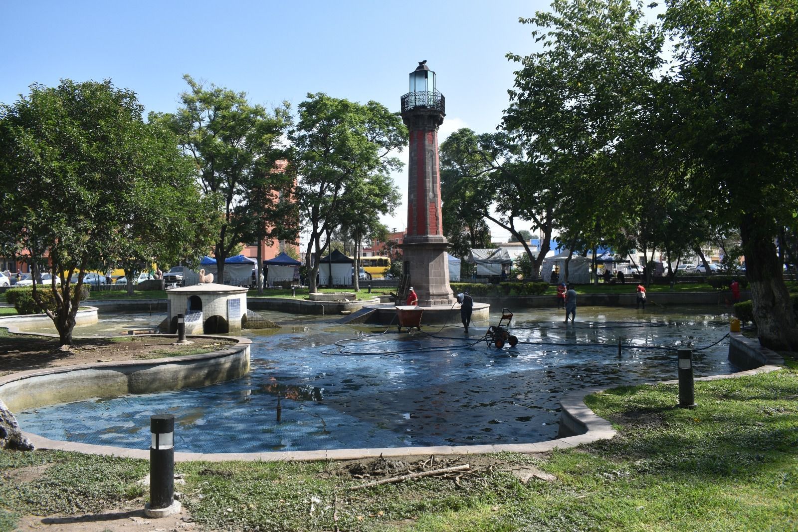 Con el objetivo de asegurar un entorno sano y seguro para los patos que habitan la Alameda Juan Sarabia, la Coordinación de Parques y Jardines de la Dirección de Servicios Municipales del Ayuntamiento de la Capital ha iniciado una limpieza profunda del lago donde estas aves nadan alrededor del faro que adorna este icónico espacio.