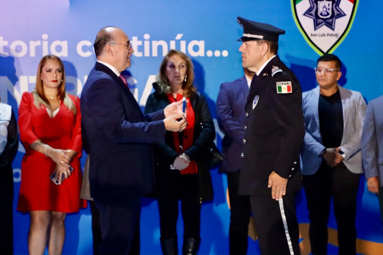 Esta tradición de la Entrega del Bastón de Mando, implementada por primera vez hace tres años, reafirma el compromiso del Gobierno Municipal con la seguridad y el fortalecimiento de la Policía Municipal de San Luis Potosí.