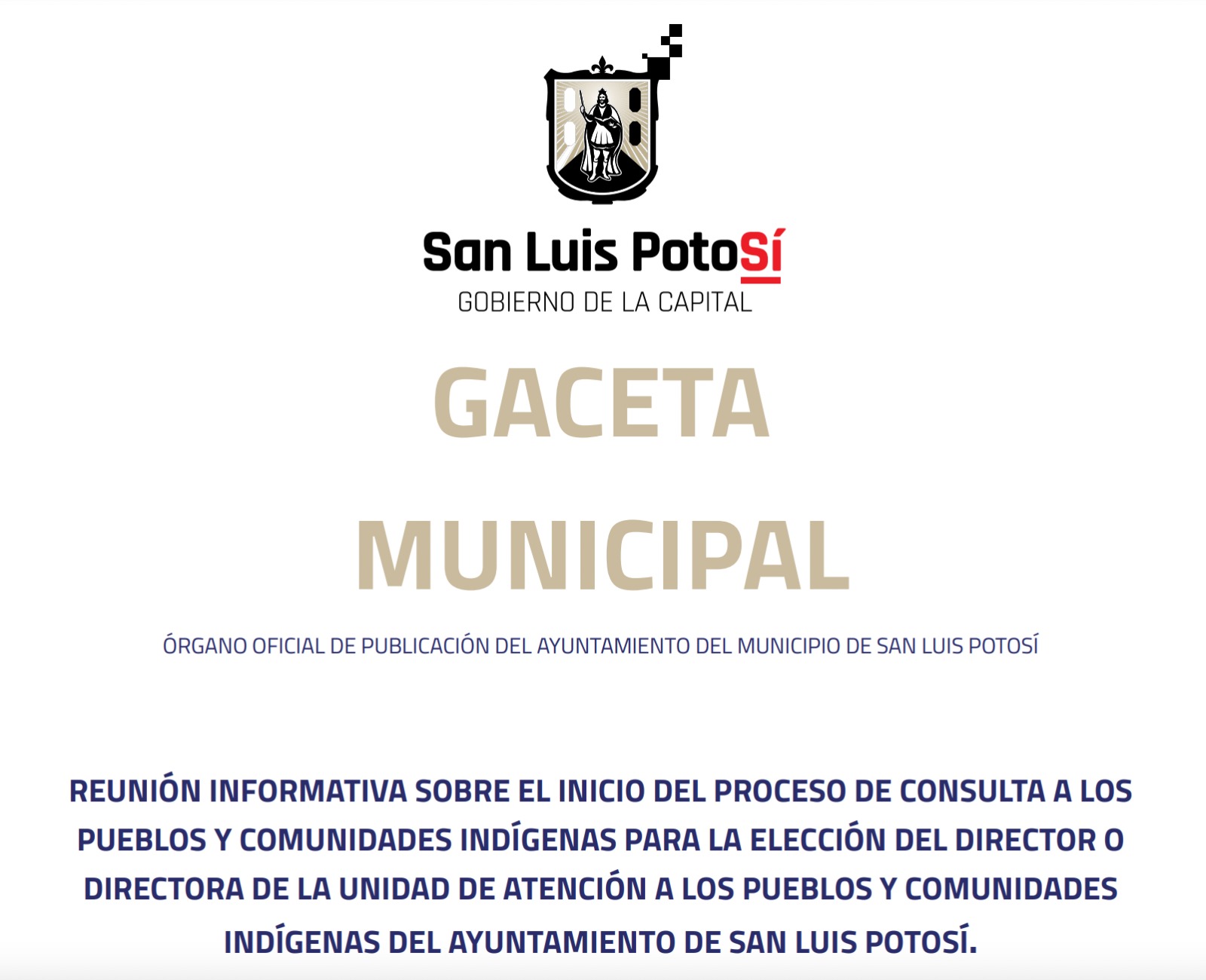 - Fundamento Legal: El proceso se basa en el Artículo 6º de la Ley de Consulta Indígena para el Estado y Municipios de San Luis Potosí, así como en los Artículos 87 y 88 de la Ley Orgánica del Municipio Libre de San Luis Potosí.
