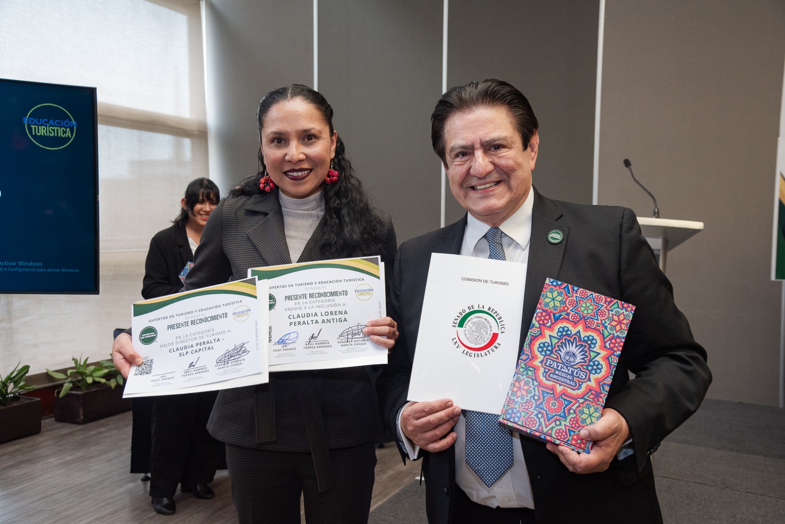 El Ayuntamiento de San Luis Capital fue reconocido por su destacada participación en la tercera edición del «Homenaje a Líderes Destacados en la Industria Turística» de los Premios Expertos en Turismo, celebrado en la sede del Senado de la República. En este evento, se destacaron las acciones del Ayuntamiento y de Claudia Lorena Peralta Antiga, Directora de Turismo Municipal, por su fomento a la inclusión en la industria turística potosina.