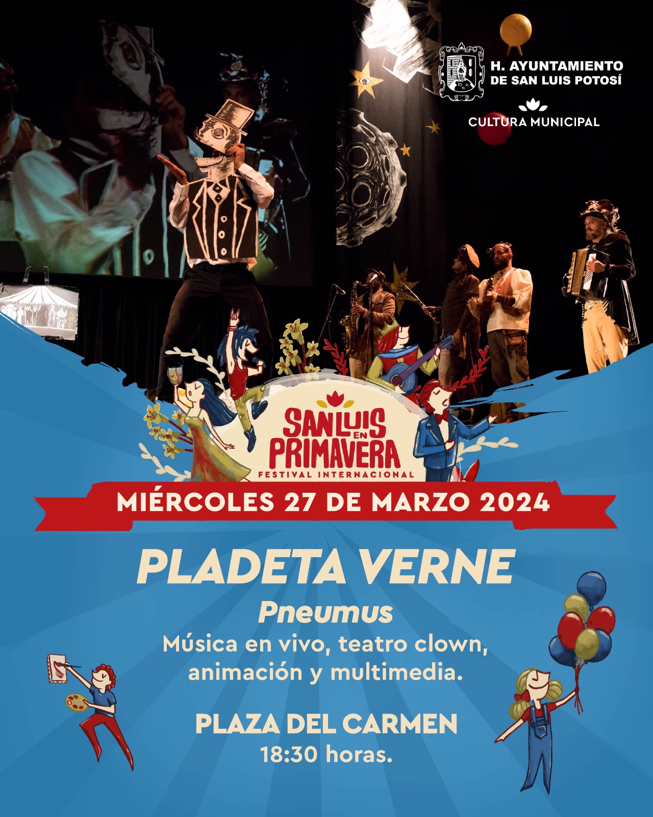 - Miércoles 27 de marzo, 18:30 horas: Obra «Pladeta Verne» con Pneumus.