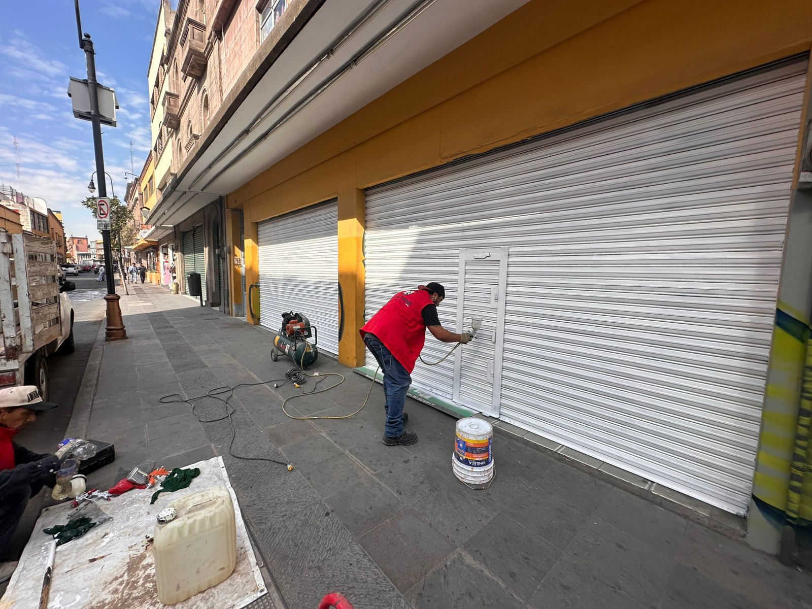 Para mejorar la estética del Centro Histórico, la UGCH eliminó graffiti de varias cortinas de comercios, reduciendo la contaminación visual y mejorando la imagen de los establecimientos.