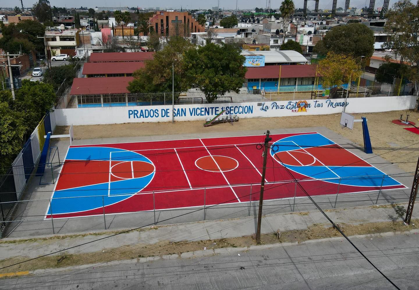 Por indicaciones del Alcalde, Enrique Galindo Ceballos, la quinta intervención en una cancha con este programa se realuzó en la colonia Prados de San Vicente, Primera Sección. El espacio fue rehabilitado y renovado para ofrecer un entorno digno, seguro y atractivo que incentive la activación física y el encuentro comunitario.
