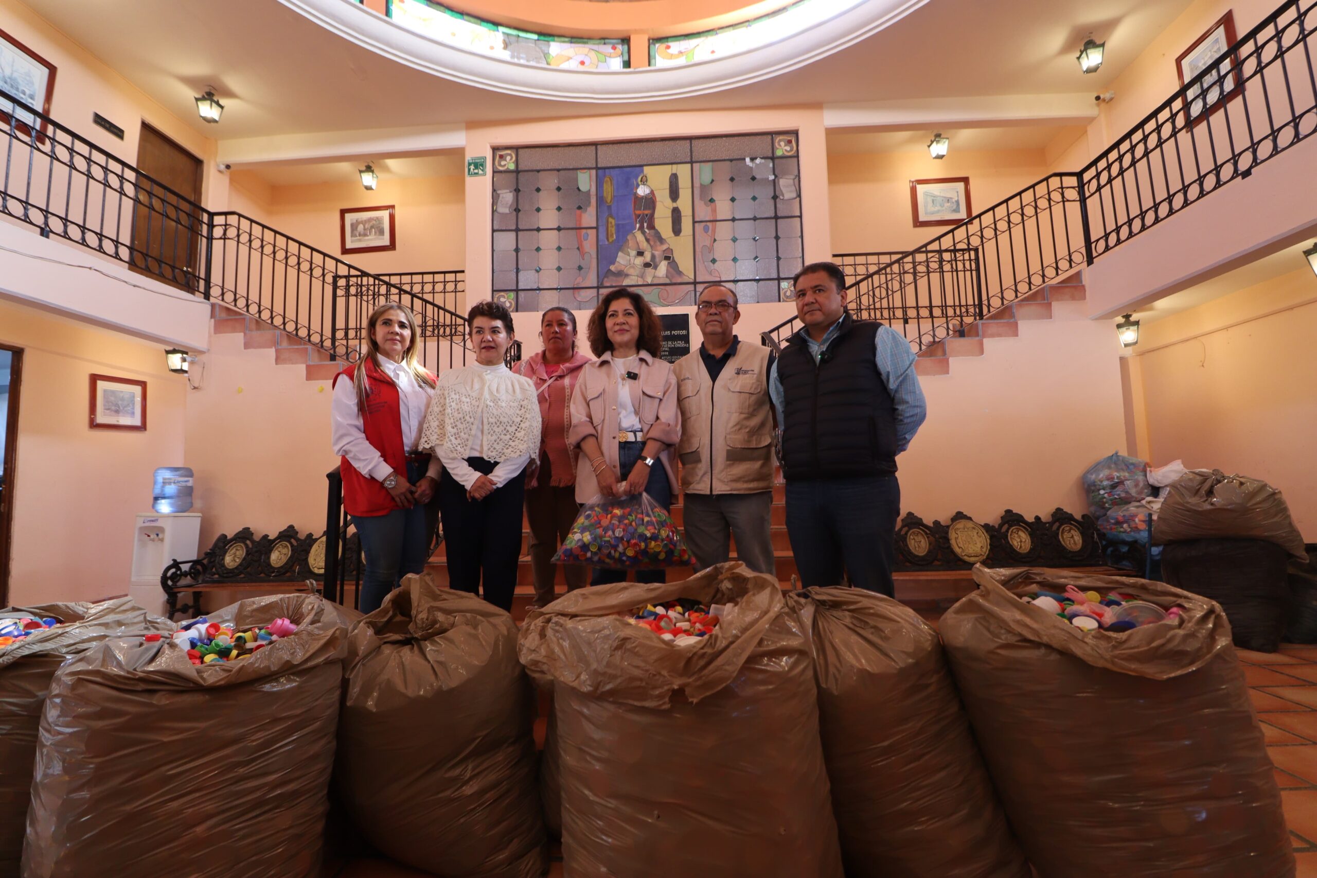 A través de la campaña de recolección de tapitas de plástico, el Gobierno de la Capital logró reunir en la Delegación La Pila más de 300 kilos de tapitas que fueron entregadas a la fundación AMANC, la primera institución en el país con presencia nacional en brindar acompañamiento integral en el tratamiento a niñas, niños y adolescentes con cáncer.