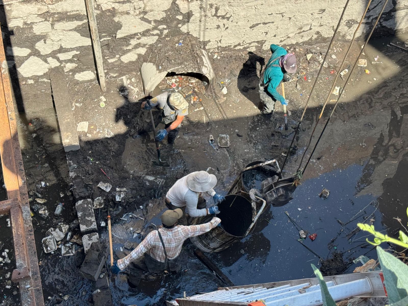 • Hasta una reja de malla ciclónica fue extraída del cárcamo del este paso deprimido.