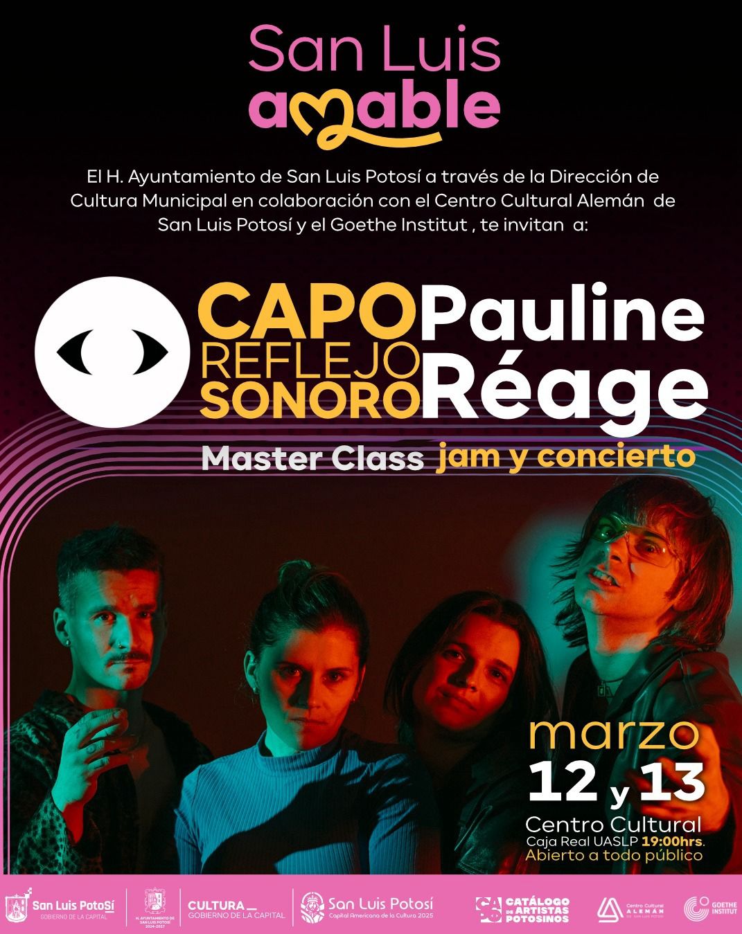 El Gobierno de la Capital a través de la Dirección de Cultura Municipal y en colaboración con el Centro Cultural Alemán de San Luis Potosí y el Goethe Institut presentan a la artista alemana Pauline Réage en San Luis Potosí, en un acuerdo de experimentación musical y de diálogo entre artistas locales e internacionales.