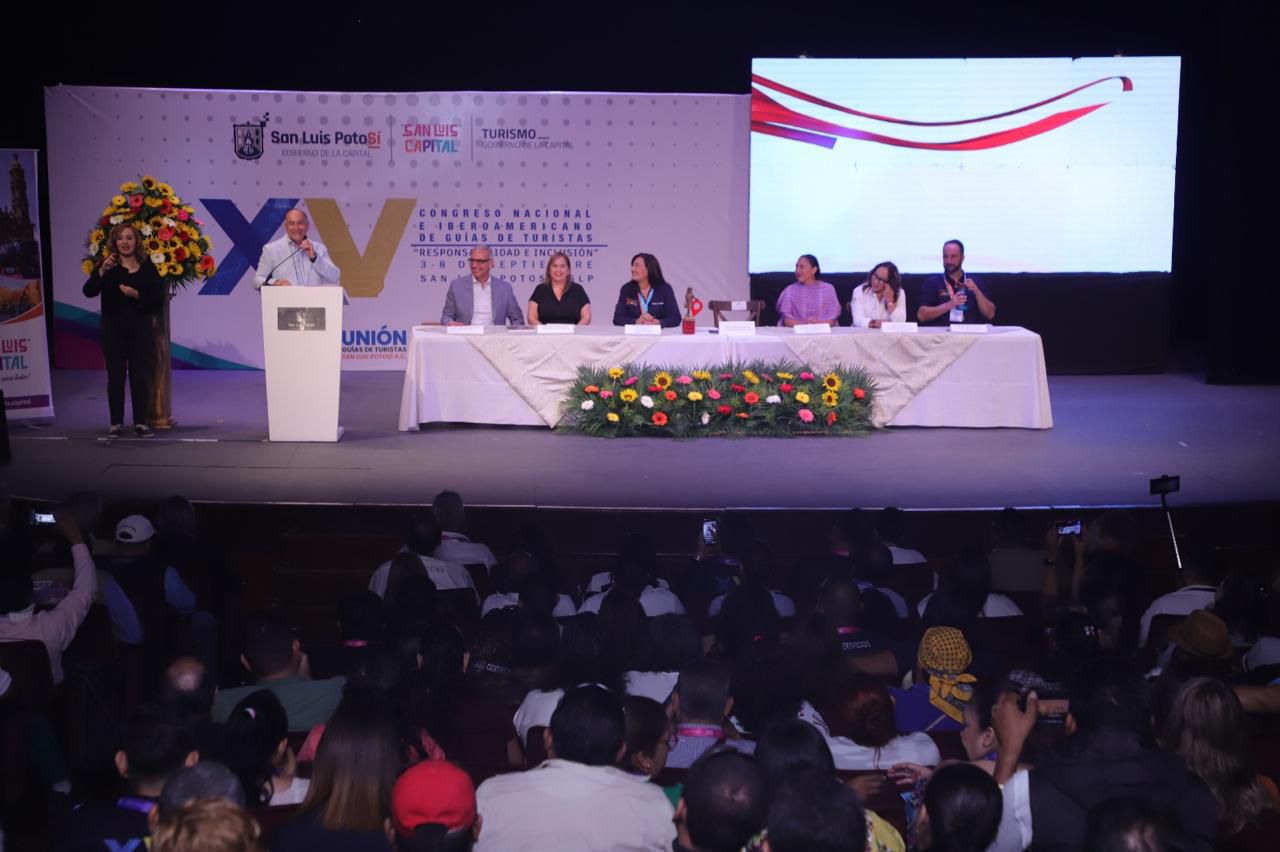 En el Teatro de la Paz, el Alcalde de San Luis Capital, Enrique Galindo Ceballos, dio la bienvenida a más de 400 participantes del XV Congreso Nacional e Iberoamericano de Guías de Turistas, titulado “Responsabilidad e Inclusión”, que se celebra del 3 al 8 de septiembre. En su discurso, el Alcalde destacó la importancia de los guías turísticos, quienes, dijo, “enamoran a los visitantes” al compartir su conocimiento y amor por la ciudad.