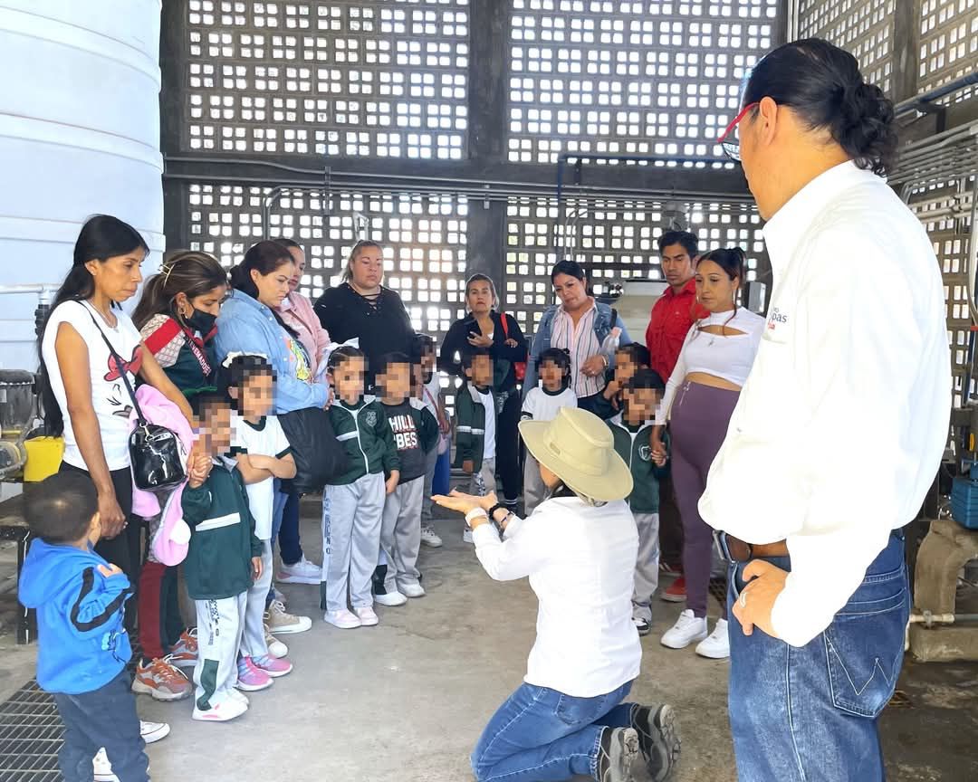 Niñas y niños junto con sus padres y madres, del Jardín de Niños Jaime Nunó de la colonia San Antonio del Saucito, visitaron el Museo del Agua de Interapas. Durante el recorrido, conocieron el proceso de potabilización del agua en la Planta Potabilizadora Los Filtros y participaron en actividades interactivas sobre el uso responsable del agua.