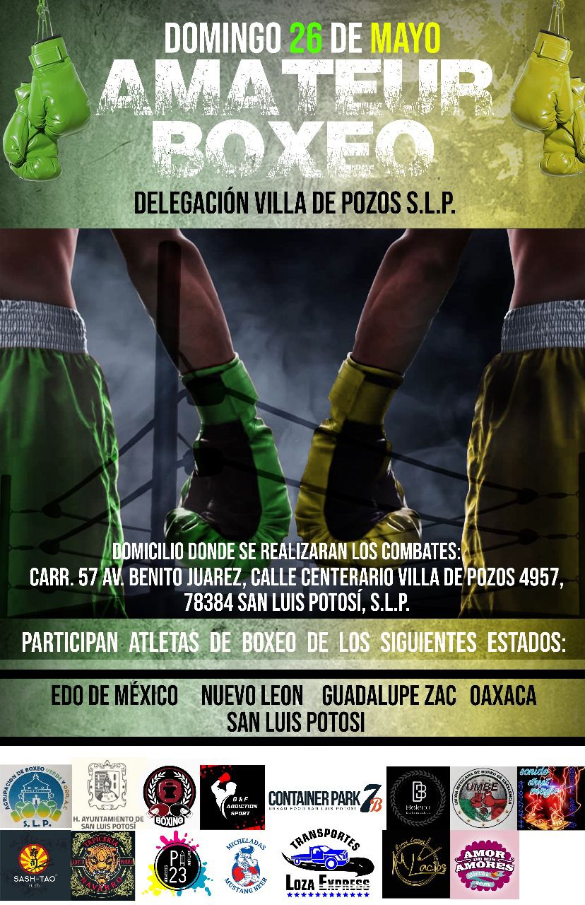 El gobierno municipal de San Luis Potosí y la Unión Mundial de Boxeo de Excelencia te invitan este domingo 26 de mayo al emocionante Torneo Amateur de Boxeo. Participarán talentosos boxeadores de diferentes estados de México, incluyendo Oaxaca, Estado de México, Zacatecas, Nuevo León y por supuesto, San Luis Potosí.