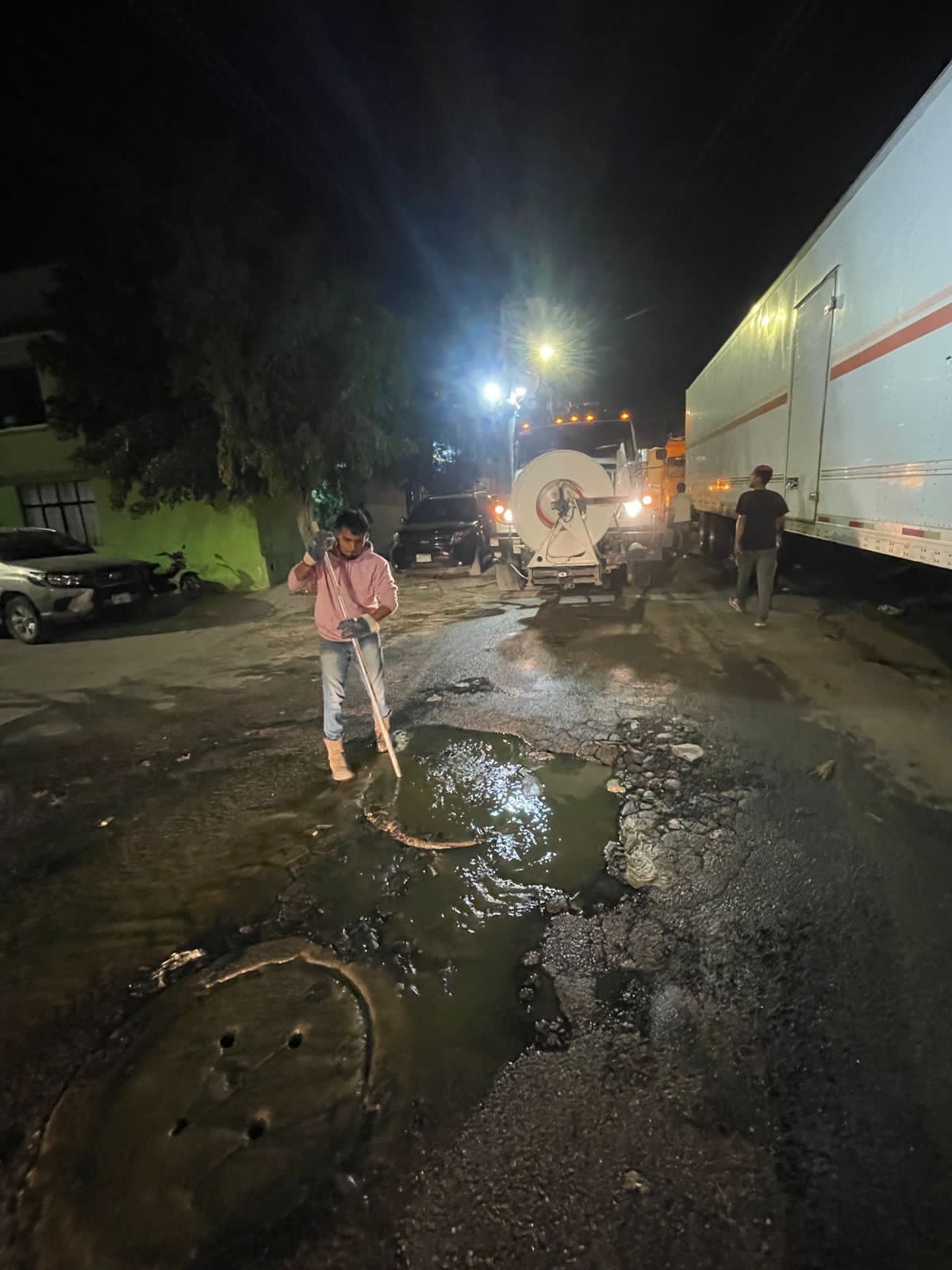 Los residentes de la calle América del Sur y República de Finlandia habían reportado problemas con el drenaje, lo que llevó a Interapas a intervenir con una cuadrilla de atención especializada. Durante la noche, se empleó un camión de limpieza a succión para desazolvar una línea de 150 metros de drenaje, extrayendo un tapón formado por desechos biológicos de ganado y basura.