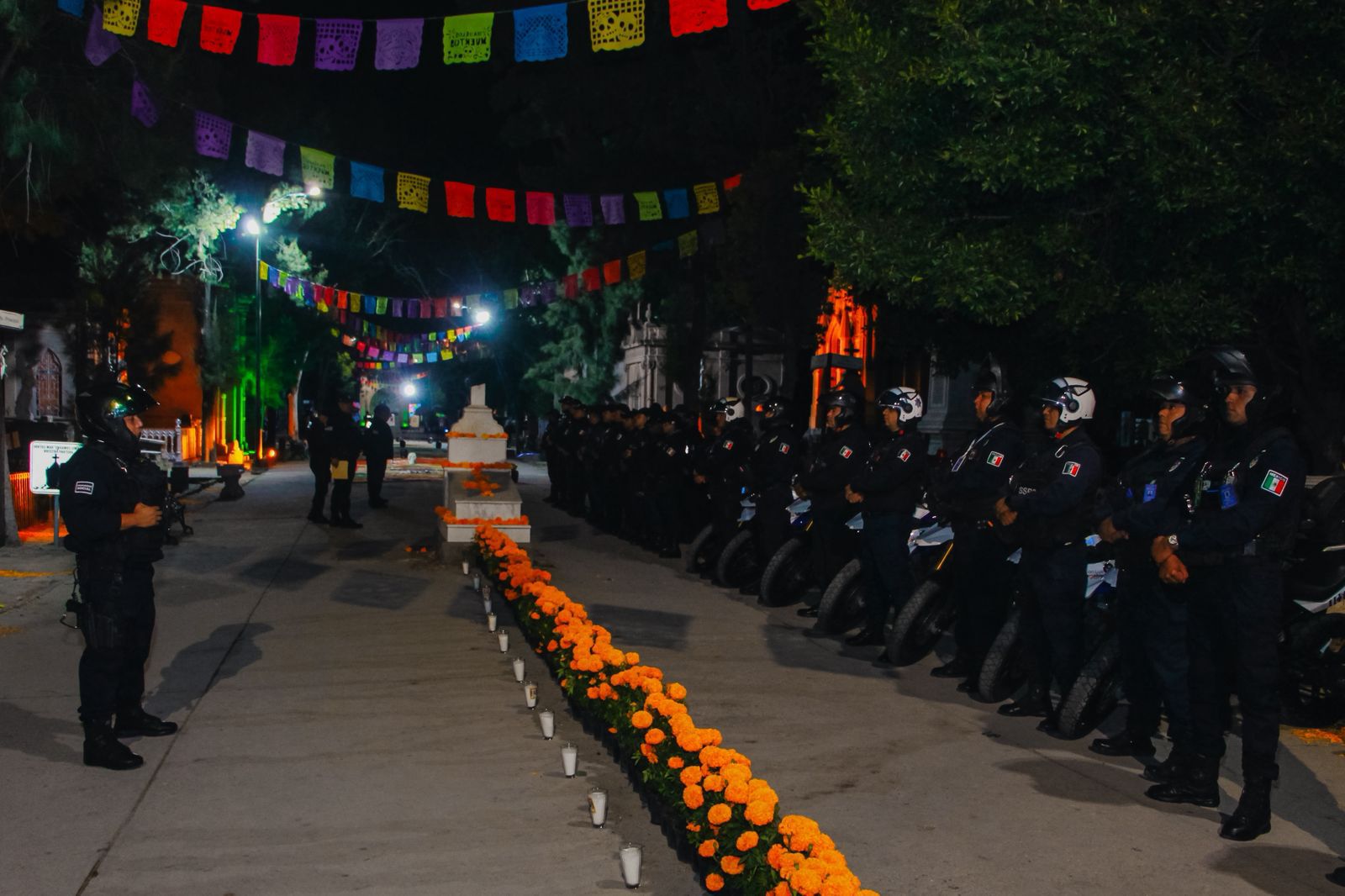 Añadió que con motivo de las festividades de Día de Muertos, se implementaron dispositivos especiales de vigilancia en los distintos panteones de la capital. En el Panteón del Saucito, que permaneció abierto de manera continua por más de 48 horas, se registró una afluencia considerable de visitantes y se reportó saldo blanco al cierre de actividades.