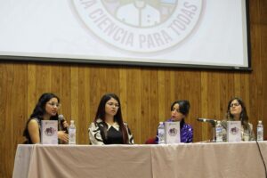 El foro “La Ciencia para Todas” reunió a destacadas científicas como la Mtra. Laura Vázquez Ayala, M.C. Mariana Alejandra Castro Mejía, M.C. Mariana Guadalupe Sauceda Lara, Ing. Myriam Martínez Jiménez y la Dra. Sonia Torres Sánchez. Estas expertas compartieron sus experiencias, aportaciones y proyectos en el ámbito científico, brindando un mensaje de aliento a las adolescentes presentes para acercarlas a carreras científicas.