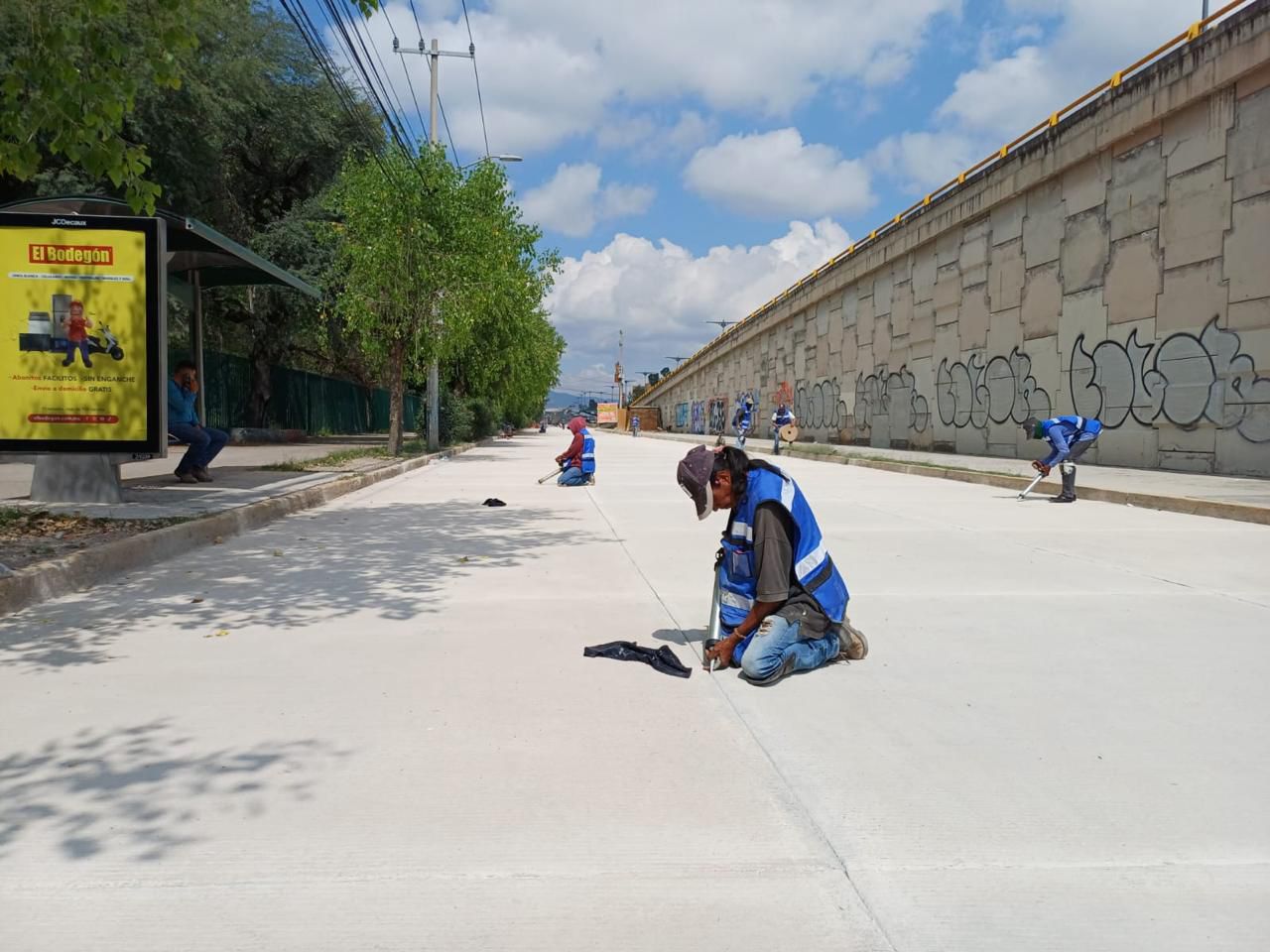 Al mismo tiempo se avanza con el tramo restante donde inicia la Lateral Sur, justo después de la entrada al Parque antes de la bajada de carriles centrales, donde se requiere del tiempo considerable para que el material que se ha colocado alcance la consistencia y fraguado correcto, por lo que se pide paciencia a la ciudadanía ante las inconveniencias.