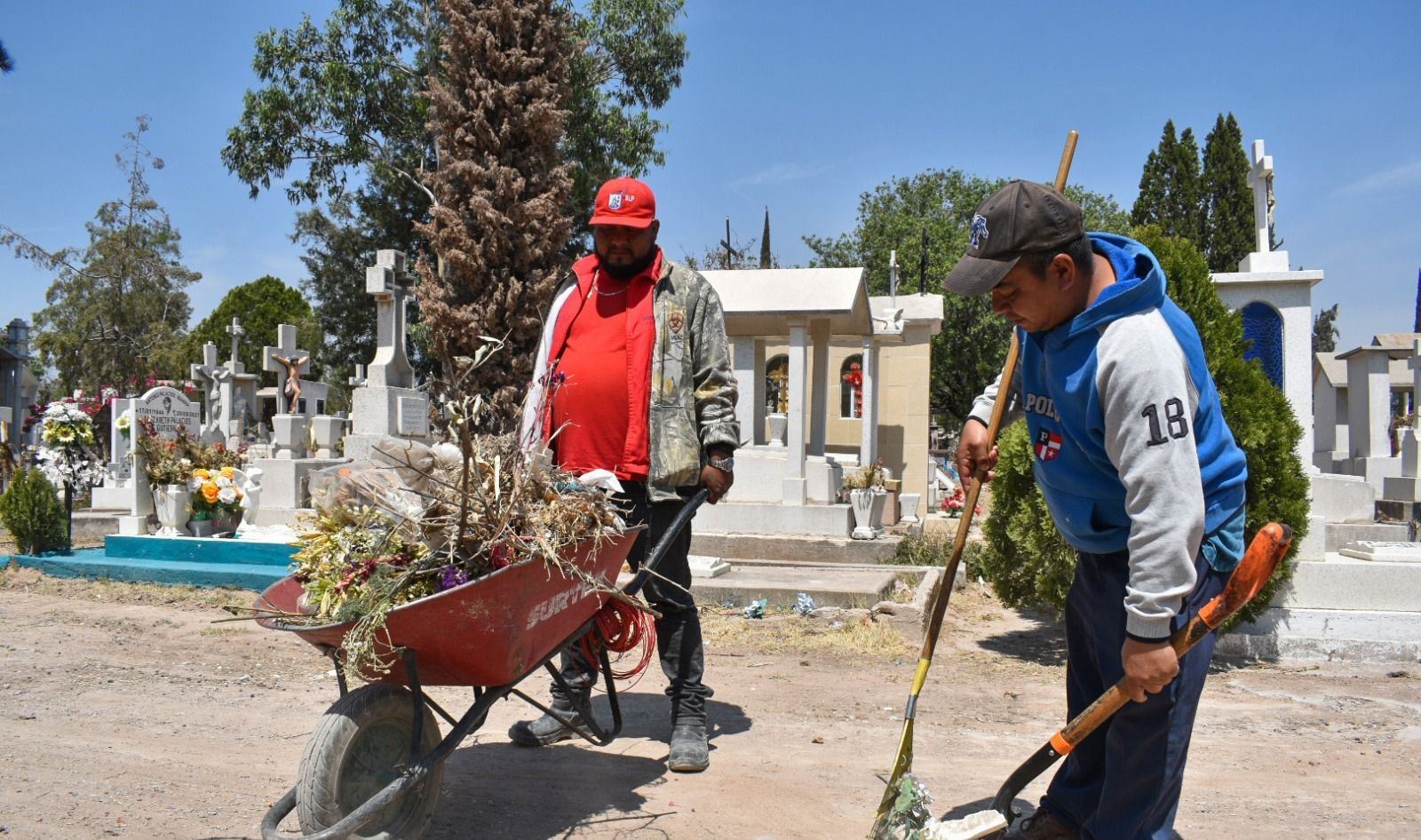 Con la mirada puesta en el Día de las Madres, fecha emblemática que atrae a numerosos visitantes, la Dirección de Servicios Municipales ha intensificado sus esfuerzos para limpiar y mantener en óptimas condiciones el histórico Panteón El Saucito.