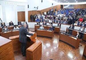En su intervención, la diputada Claudia Tristán Alvarado, representante parlamentaria del Partido Nueva Alianza, indicó que el papel de la Guardia Nacional en materia de seguridad, deberá fortalecerse en la coordinación institucional, teniendo como compromiso brindar la protección y seguridad a lo largo del territorio nacional y en San Luis Potosí, garantizando la paz.