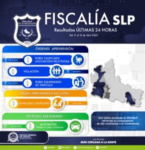 En las últimas 24 horas, la Fiscalía General del Estado (FGE) detuvo a cuatro personas por varios delitos, y se localizó un vehículo con reporte de robo; uno de los aseguramientos se logró a través de un mandamiento judicial de cateo en San Luis Potosí.