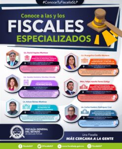 La Fiscalía General del Estado de San Luis Potosí (FGESLP) atiende a la ciudadanía, procura justicia, y combate el delito a través de seis Fiscalías Especializadas en San Luis Potosí.
