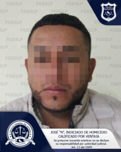 Este jueves 19 de octubre, agentes de la Policía de Investigación (PDI) de la Fiscalía General del Estado de San Luis Potosí (FGESLP) llevaron a cabo la aprehensión de Jose «N», quien se encuentra señalado en el ilícito de homicidio calificado por ventaja.