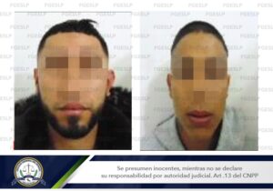 SLP. – Dos hombres fueron detenidos por la Fiscalía General del Estado (FGE), al estar relacionados con el robo a una tienda de conveniencia en la ciudad de San Luis Potosí.