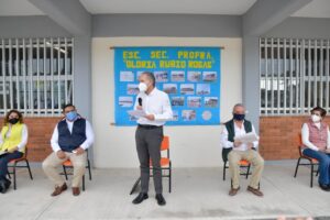 En la Escuela Secundaria Profesora Gloria Rubio Rosas del Fraccionamiento Villa Real de Santiago, el jefe del Ejecutivo estatal, inauguró 3 aulas didácticas y supervisó los avances de una más, después, el Secretario de Educación, Joel Ramírez Díaz, indicó que en el municipio se aplican 206.6 millones de pesos para realizar 254 obras y equipamientos en 147 escuelas de educación básica, media superior y superior, a las que asiste el 64 por ciento de las y los alumnos del municipio, “en total, esta escuela ha recibido una inversión de más de 7 millones 916 mil pesos”, dijo.
