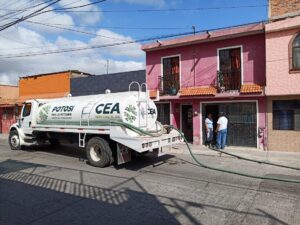 La Comisión Estatal del Agua (CEA) en San Luis Potosí distribuyó 1.5 millones de litros de agua potable, en los últimos días, a familias de la capital, tras las dos fugas registradas en el acueducto de El Realito el pasado domingo 12 de junio, con lo que el nuevo Gobierno da muestra de su trabajo a favor del bienestar de las y los potosinos.