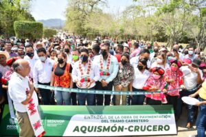 Con emoción, las y los habitantes del municipio de Aquismón en la Huasteca Potosina, recibieron la presencia del Gobernador del Estado Ricardo Gallardo Cardona, quien inauguró la pavimentación del camino de acceso a este Pueblo Mágico, con una inversión bipartita de 20 millones de pesos, con la que se impulsa la detonación del turismo regional y se reactiva la economía para las y los prestadores de servicios.
