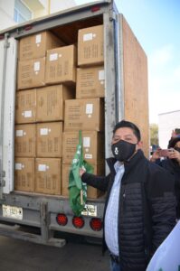 La Secretaría de Salud destaca la donación de un camión con material de protección para personal médico y de enfermería de las cuatro zonas de la entidad.