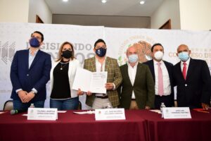 El Mandatario Estatal potosino entregó este miércoles la Iniciativa de Ley de Guardia Civil ante el Poder Legislativo local.