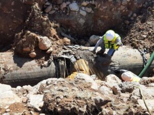 El titular de la CEA informó que ingenieros de la dependencia estatal supervisan los trabajos de reparación de la fuga, mismos que corren a cargo de la empresa concesionaria, que además se hizo acreedora a una nueva sanción conforme a lo estipulado por el contrato de prestación de servicios.