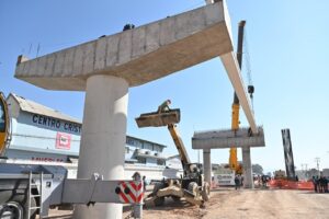 Se colocaron cinco claros con siete trabes prefabricadas, que darán una longitud de 123 metros.