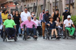 “Si no nos sentamos en una silla y nos topamos con un poste de luz en medio de la banqueta, si no descubrimos que no podemos subir a la Plaza de Armas porque la rampa está muy inclinada o porque hay un vehículo tapando la banqueta, si no vemos eso sentados aquí, no hay manera de hacer conciencia”, explicó el presidente municipal Enrique Galindo Ceballos.
