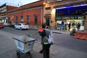 Para las labores de recolección de basura, el Centro Histórico está dividido en cuatro cuadrantes, a los que se tuvo que asignar un camión recolector, con 120 trabajadores destinados al barrido manual, principalmente en las plazas de Armas, Fundadores, del Carmen y calles aledañas como Zaragoza, 20 de Noviembre, Eje Vial, Calzada de Guadalupe, Damián Carmona y Carranza.