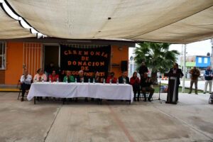 - Se donaron una resbaladilla, pasamanos y sube y baja en beneficio del desarrollo integral de 114 alumnas y alumnos del jardín de niños Alicia Palomares Padilla