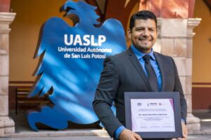 Hazel Griselda Díaz Santiago egresada del programa de licenciatura de Ingeniería en Alimentos y su asesor, el doctor Jaime David Pérez Martínez, profesor investigador de la Facultad de Ciencias Químicas de la Universidad Autónoma de San Luis Potosí, fueron galardonados en la categoría Estudiantil del “Premio Nacional de Ciencia y Tecnología en Alimentos”.
