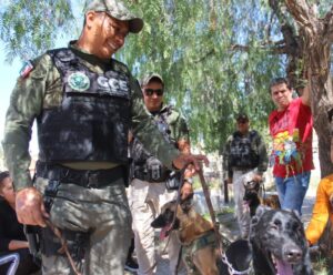 Derivado de las acciones desplegadas en el Operativo “Fieles Difuntos 2022” que dirige la Secretaría de Seguridad y Protección Ciudadana del Estado (SSPCE), como lo instruyó el Gobernador de San Luis Potosí Ricardo Gallardo Cardona, a fin de resguardar el orden público en sitios que concentran gran flujo de población en el marco de las actividades por Día de Muertos, el Agrupamiento K9 de la Guardia Civil Estatal (GCE) despliega labores de proximidad social en panteones de la ciudad.
