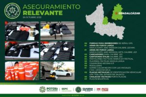 Guadalcázar, San Luis Potosí. – En el marco de los operativos de seguridad y de labores de inteligencia implementados como parte del Plan Integral de Seguridad para el combate frontal contra el crimen organizado en la zona Altiplano, oficiales de la Guardia Civil Estatal (GCE) aseguraron vehículos, armamento y equipo táctico que fue abandonado en la comunidad de Los Amoles en este municipio.